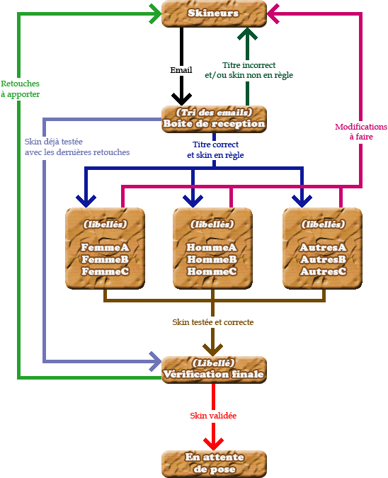 Voici un schéma décrivant les différents parcours que peut avoir un email envoyé à l'équipe SkinSO : Vous pourrez voir diverses explications en laissant votre curseur sur une partie du schéma.