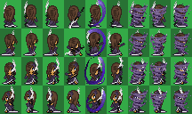 Un groupe de trois par quatre frames constitue une « Phase ». Une skin est composèe de trois « Phases » : Marche, Attaque, Magie. On obtient ainsi la délimitation suivante :